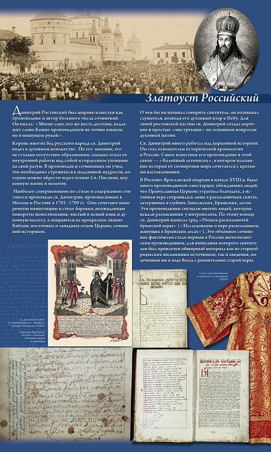 О святителе Димитрии Ростовском – создателе собрания житий святых, говорят, что он своими трудами сделал святых ближе к людям. Мы надеемся, что посвященный ему просветительский проект позволит приблизить к людям его самого. А точнее – даст возможность нашим современникам приблизиться к нему – удивительно светлому и талантливому человеку, успевшему совершить так много.