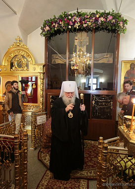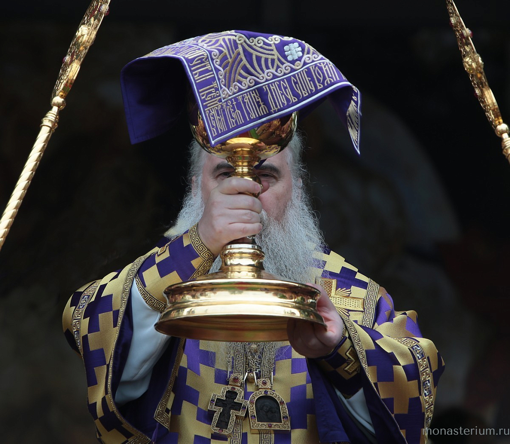 По окончании Литургии была освящена копия Животворящего Креста, которая будет доставлена в Саратовскую митрополию.