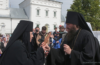 В завершение официальной части, предваряя открытие мероприятия, епископ Переславский и Угличский Феодор вручил игумении Евстолии архиерейскую грамоту за организацию и проведение финального тура III Международного православного детско-юношеского хорового фестиваля-конкурса «Александр Невский».