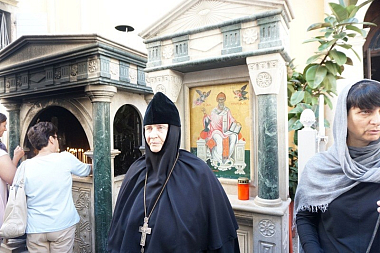 Игумения Неонилла и сестры в ходе поездки причастились в храме Святителя Спиридона Тримифунтского на острове Корфу, в храме Святого Иоанна Русского на острове Эвбея и в базилике Святителя Николая в Бари. Иеромонах Феофан в греческих храмах сослужил греческим священникам за богослужениями, а в Бари за Литургией и чтением акафиста святителю Николаю Его Преподобие сослужил русским священникам. В Бари монашествующие посетили также русское подворье Свт. Николая Чудотворца. Всё это время в Краснодаре в монастыре «Всецарица» священники и сестры молились о путешествующих.