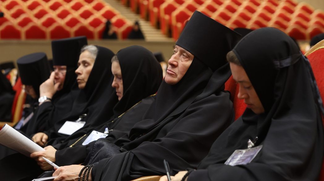 Места в президиуме заседания заняли: Святейший Патриарх Московский и всея Руси Кирилл; управляющий делами Московской Патриархии, наместник Новоспасского ставропигиального мужского монастыря Москвы митрополит Воскресенский Дионисий; председатель Синодального отдела по монастырям и монашеству, наместник Донского ставропигиального мужского монастыря Москвы митрополит Каширский Феогност; председатель Комиссии по организации жизни монастырей и монашества Межсоборного присутствия Русской Православной Церкви митрополит Нижегородский и Арзамасский Георгий; заместитель председателя Синодального отдела по монастырям и монашеству, настоятельница Зачатьевского ставропигиального женского монастыря Москвы игумения Иулиания (Каледа).