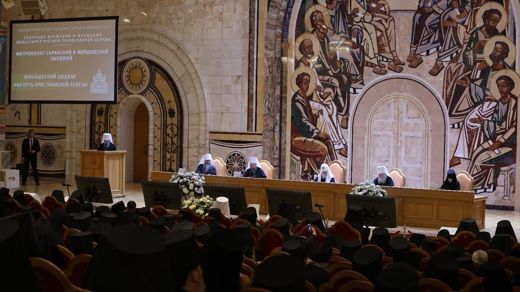 25 сентября 2023 года в Зале церковных соборов кафедрального соборного Храма Христа Спасителя в Москве Святейший Патриарх Московский и всея Руси Кирилл возглавил работу Собрания игуменов и игумений монастырей Русской Православной Церкви.