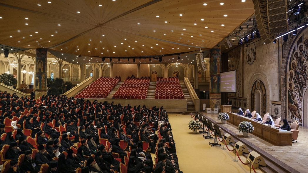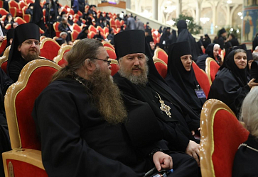 Предстоятель Церкви обратился к участникам Собрания с такими словами: «Всех вас сердечно приветствую и выражаю радость по поводу нашей встречи. Время от времени Патриарх должен встречаться с представителями монашества – во-первых, сказать о том, что на душе лежит, но также и самому что-то услышать, потому что многое формируется в сознании Патриарха от того, что он получает со стороны как духовенства, так и монашествующих. Вы прибыли из разных епархий нашей Церкви, и, конечно, замечательно, что встречи в таком формате у нас проходят практически ежегодно». Затем Предстоятель Церкви зачитал основной доклад.