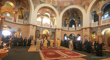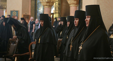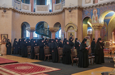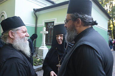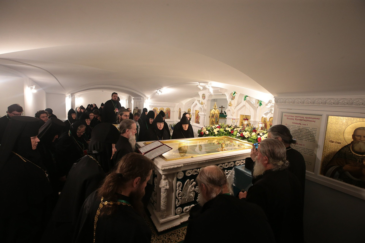 За богослужением молились: митрополит Святогорский Арсений, наместник Святогорской Успенской лавры, викарий Донецкой епархии Украинской Православной Церкви; настоятельница Воскресенского Новодевичьего монастыря игумения София (Силина) с сестрами, секретарь Комиссии Межсоборного присутствия Русской Православной Церкви по организации жизни монастырей и монашества; настоятельница Богородице-Рождественского ставропигиального женского монастыря Москвы игумения Викторина (Перминова), член Коллегии Синодального отдела по монастырям и монашеству; игумены и игумении монастырей Русской Православной Церкви и Поместных Церквей – участники круглого стола.