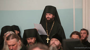 Епископ Борисовский и Марьингорский Вениамин (Белорусский Экзархат) в своем выступлении на тему «Посреди мира и вдали от него: отношения монахов с внешним миром в городском монастыре (сохранение в обители духа отречения от мира)» напомнил участникам круглого стола о необходимости учиться беречь благодать, полученную через молитву и уединение: «Если мы научимся молиться, то найдем выход из всех проблем». Помимо тщательного изучения Священного Писания, важным занятием братии является изучение святоотеческих творений, которое дает монаху подлинное понимание духовного служения, постоянно напоминает об отречении от мира. Общественным или миссионерским служением по благословению священноначалия имеет смысл заниматься не всем, а только некоторым инокам и лишь в той степени, которая не мешает исполнению их основных обязанностей. При этом игумен призван следить за тем, чтобы братия не только выполняли определенную работу, но и творили молитву, и имели о себе смиренный помысел. Его Высокопреосвященство призвал игуменов быть внимательными, набирая на послушания трудников, особо следить за тем, чтобы они не нанесли духовного вреда братии. Владыка обратил особое внимание на то, что в храме должно быть определено место для монахов, отдельное от мирян, а также на то, что для уединенной молитвы хорошо устраивать скиты, куда братия могли бы удаляться время от времени. Утреннее богослужение полезно перенести ближе к полуночи, когда иссякает поток паломников. Во избежание опасностей, связанных с желанием братии узнавать новости из интернета, хорошо, когда игумен сам сообщает братии о церковных новостях.