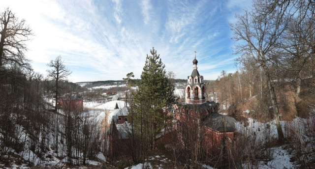 Прежде, чем рассказать о сегодняшнем дне скита, я должен обратиться к истокам его возрождения. Оно, как у всех святынь Русской Православной Церкви, переданных ей в разные годы после десятилетий безбожия, было трудным. Скит, построенный в километре от монастыря в 1862 году на месте пещеры (которую, по преданию, выкопал сам преподобный Савва и где он в посте и молитве провел последние два года жизни), находился в плачевном состоянии. В годы советской власти из 17 построек 15 были уничтожены. Остались только Малый скит и двухэтажный корпус, превращенный в военное общежитие. Жили люди и в храме преподобного Саввы. В 1998 году должны были состояться торжества в честь празднования 600-летия обители и возвращения в нее честных мощей преподобного Саввы Сторожевского, Звенигородского чудотворца. Братия приложила много сил, чтобы к осени закончить так называемые консервационные работы. И 24 августа1998 года в скитском храме прошла первая после безбожного периода Божественная литургия.