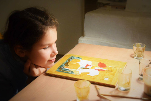 На занятиях первого года иконописного кружка дети научились растирать на стекле краски из минералов, готовить клеи и освоили сложную технику темперной живописи.