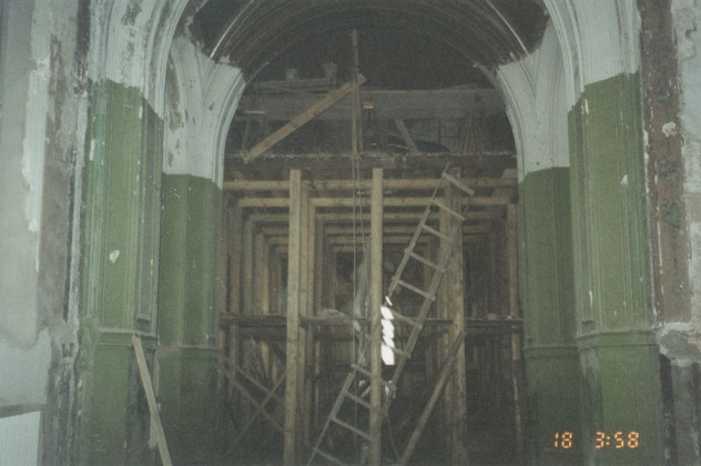 На первом этаже Покровского храма, где сейчас мощи блаженной Матроны Московской, находился склад, где, по сути, хранился только мусор. На втором этаже – кабинеты Министерства топлива и энергетики. В храме были сделаны перекрытия и получились третий и четвертый этажи, которые были сданы в аренду разным фирмам. Выезжая, арендаторы четвертого этажа –не помню, что это была за фирма, – сожгли подкупольную часть, и, к сожалению, сгорела вся роспись Покровского храма.