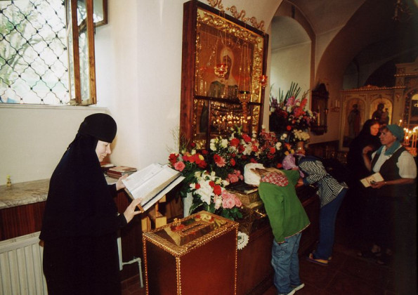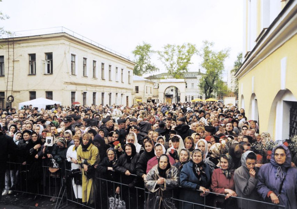 Монастырь открыт каждый день с 7.00 утра до 20.00 вечера. Многие москвичи приезжают к мощам утром, до работы, или после работы, просят помощи. Утром по субботам и воскресеньям бывает особенно много автобусов из регионов, люди с 4 утра занимают очередь. И так – с ранней весны до поздней осени. Поэтому стоять приходится долго, и, если есть возможность, лучше приезжать в другой день. Например, в будние дни к вечеру, после 18-19 часов. В 20.00 мы закрываем ворота на вход, а те, кто уже на территории, обязательно приложатся к мощам, даже если очередь еще большая. Бывает, последние паломники уходят в 22-23 часа.