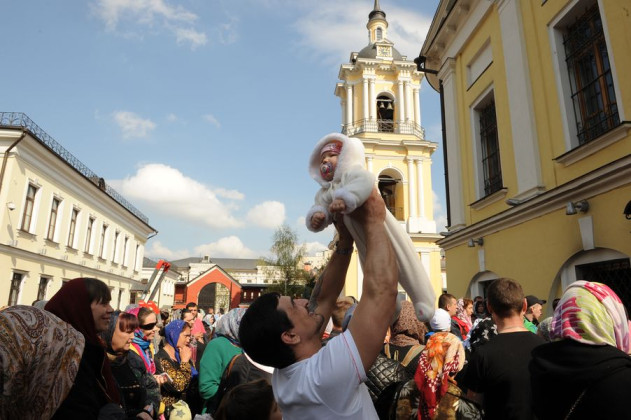 Также Предстоятель вместе с детьми Покровской обители выпускает голубей в праздник Благовещения Пресвятой Богородицы в Кремле.