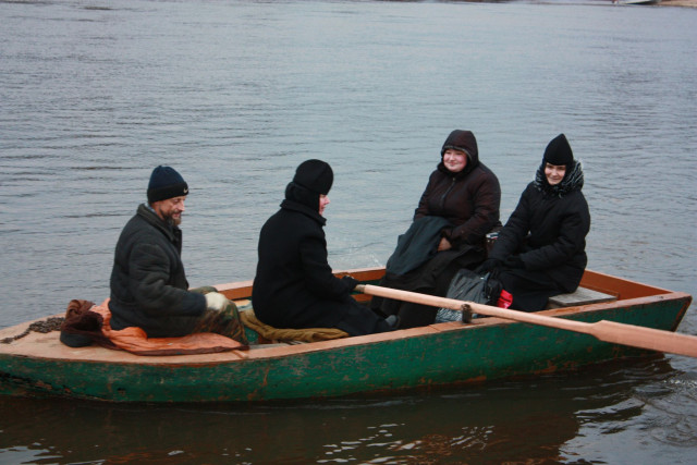 До морозов основным видом транспорта, помогающим сообщаться с городом, становятся лодки. Я сама когда-то научилась управлять веслами, хотя прежде и помыслить не могла, что буду на лодке плавать. И почти все наши сестры освоили эту непростую науку. Непростую потому, что она требует, помимо физической силы, еще и определенной ловкости, особенно когда плывешь против течения. Или, напротив, когда течение стремительно уносит тебя вниз по разлившейся на десять километров Клязьме. Бывает, по 20 раз на день приходится сестрам плавать туда-сюда, и сердце кровью обливается: как доберутся они при неожиданно усилившемся порывистом ветре или обрушившемся ливне? Все строительные материалы – вагонку, цемент, кирпичи, мел, известь – доставляли в монастырь по реке. Еще корма и продукты. Не сосчитать, сколько тысяч тонн груза за эти годы перевезли! Плаваем, что называется, до последнего. Иногда лавируем между льдинами, порою даже в темноте. Однако когда на реке происходит скопление больших льдин, когда Клязьму заторит возле нас, а мороза при этом нет и по льду на другую сторону берега не пробраться, мы «уходим в затвор». Как-то две зимы просидели, словно отшельники, но – без всякого ропота. (Я часто говорю сестрам, что грех прощаем, а ропот наказуем). Собираемся тогда в небольшом храме в честь Святого апостола и евангелиста Иоанна и молимся, молимся... Сегодня с уверенностью можно сказать, что нам нравится быть «в затворе». Молитва усиливается. Есть время читать духовные книги и соотносить свою жизнь с наставлениями и добрыми советами святых Отцов. Но и, выходя «из затвора», мы радуемся! Так что, как видите, радостных моментов в нашей жизни много.