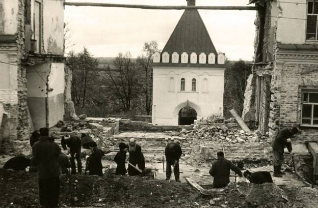 А получилось следующее. Мы подготовили в нем южный Никольский придел, однако архимандрит Тихон, до которого, по всей вероятности, дошли искаженные сведения, устроил мне разгром: «Что ты там службы устраиваешь? Какое имеешь право?» Я ответил, что прекрасно понимаю: без архиерейского благословения служить я не могу, поэтому мы просто собираемся в Никольском приделе и исполняем молитвенное правило. Отец Тихон велел разобрать иконостас. Раз сказал, второй, затем решил послать для контроля своего келейника. Тут Господь надоумил меня поискать новое место для иконостаса. Увидев над Святыми вратами помещение, в которое непонятно почему не было входа, я обратился за разъяснениями к завхозу музея. Услышал в ответ, что там все отремонтировано, полы настелены, но из-за опасения, что забегающие туда дети могут устроить пожар, пришлось заложить дверь кирпичом. Далее было сказано, мол, если я возьму на себя ответственность за пожарную безопасность, то мне покажут место дверного проема. Показали. И когда прибыл «с контролем» келейник наместника, мы уже разобрали фанерный иконостас в Никольском приделе и перенесли его в надвратную церковь. Причем он вошел один в один! Потом Издательский отдел Московской Патриархии сделал фотографии икон, мы их по чину наклеили. Позже, как мне рассказывали, архимандрит Евлогий (Смирнов), в мае 1988 года назначенный сюда наместником, радостно удивился: «Надо же, храм готов для богослужений!» Такое вот чудо сотворил Господь!