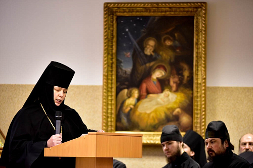 1 декабря 2014 Донской ставропигиальный мужской монастырь Москвы принимал участников регионального этапа ХХIII Международных Рождественских образовательных чтений. Третий год на этом крупнейшем церковно-общественном форуме существует направление, посвященное вопросам монашества. И уже во второй раз Синодальный отдел по монастырям и монашеству в преддверии традиционных январских Чтений проводит собрания, на которых игуменам, игумениям, братии и сестрам ставропигиальных и епархиальных монастырей предлагаются доклады, раскрывающие различные аспекты претворения святоотеческого духовного наследия в истории и современной жизни Церкви и православного иночества.