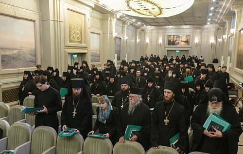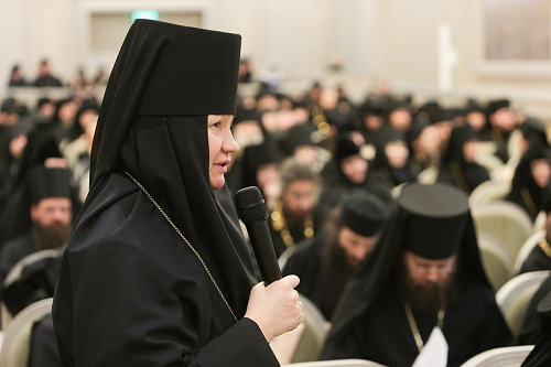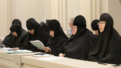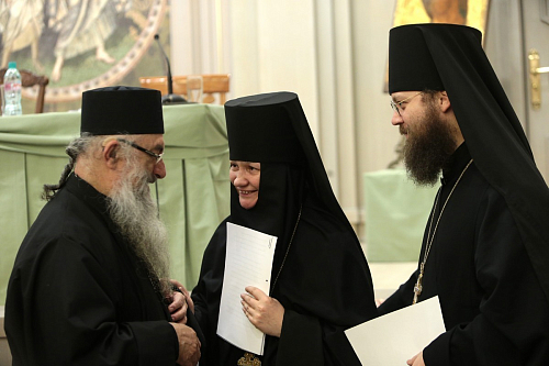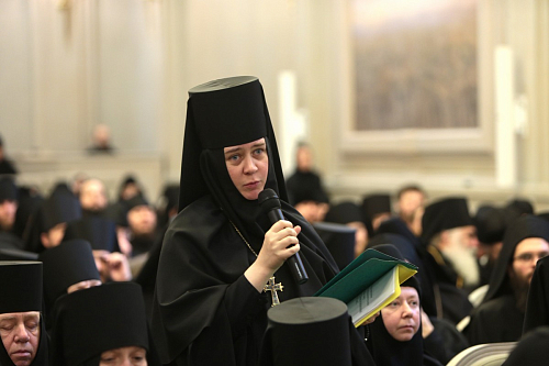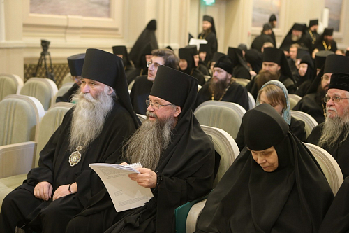 Особенный интерес и живой отклик вызвал доклад архимандрита Тихона (Шевкунова). В своих рассуждениях он глубоко и разносторонне раскрыл проблему оставления монашества и убедительно показал, что источник этой проблемы − в недостатке подлинной, живой веры. В рамках работы Комиссии Межсоборного присутствия группой специалистов во главе с архимандритом Тихоном было подготовлено глубокое исследование, посвященное каноническим вопросам, связанным с оставлением монастыря и монашества. В ближайшее время, после определенных дополнений и доработок, оно сможет быть представлено монастырям в качестве рекомендаций.