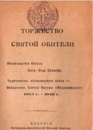 Брошюра, выпущенная к 15-летию Богородице-Владимирской обители в Шанхае.