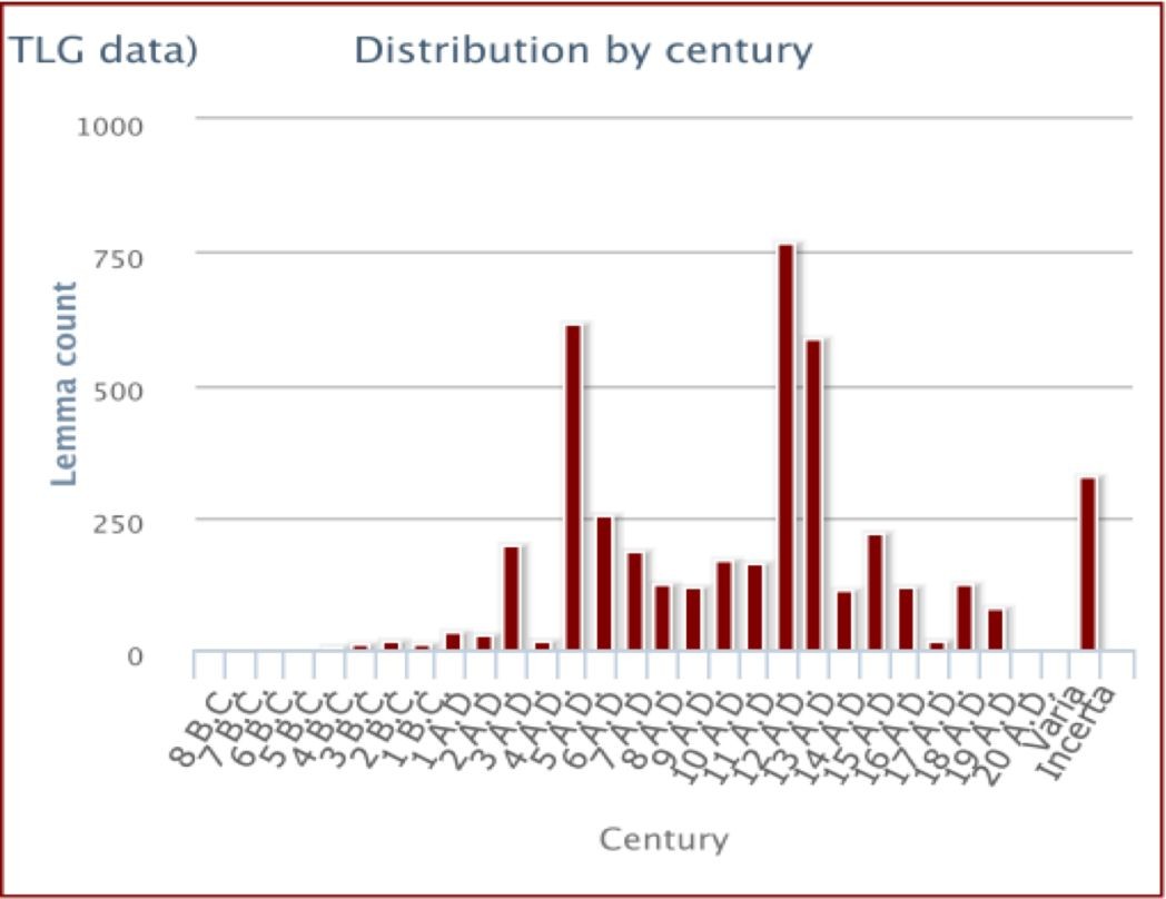 По-древнегречески чтение ἀνάγνωσις. Если мы откроем график использования данного слова во всей византийской письменности, на графике видно, что максимально это слово используется в XI веке.