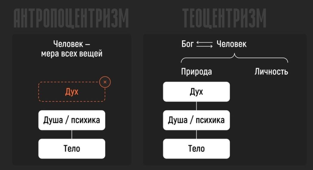 В Православии представление о человеке теоцентрично, человек здесь всегда рассматривается в диаде, в отношении «Бог–человек», в контексте духовного мира, во взаимодействии с миром метафизическим.
