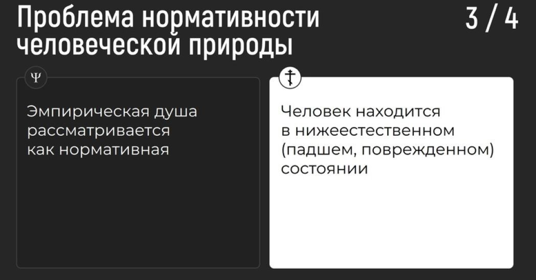В светской психологии эмпирическая душа (психика) рассматривается как нормативная, не учитывая того, что человек, согласно православной антропологии, с самого рождения находится в нижеестественном (поврежденном грехопадением) состоянии своей природы.