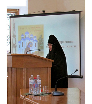 Доклад игумении Евдокии (Левшук), настоятельницы Спасо-Евфросиниевского ставропигиального женского монастыря в Полоцке, на Международной конференции «Киево-Печерская лавра – Афон – Иерусалим: единство сквозь века», проходившей 20–21 июля в Киево-Печерской лавре.