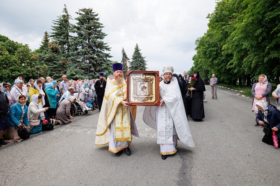 Утром святыню встретили у поклонного креста на месте уничтоженного в 1930-е годы Троицкого кафедрального собора Симбирска. Затем начался крестный ход, который возглавили митрополит Симбирский и Новоспасский Лонгин, епископ Барышский и Инзенский Филарет и епископ Мелекесский и Чердаклинский Диодор.