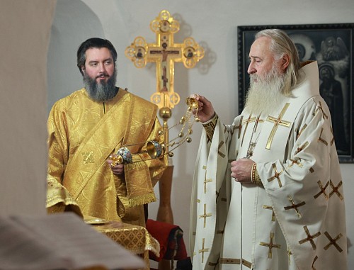 Его Высокопреосвященству сослужил насельник Введенского ставропигиального мужского монастыря Оптина пустынь иеромонах Марк (Трушков).