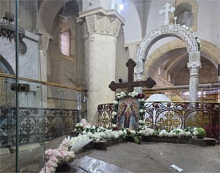 В этот же день паломники побывали в находящемся в Старом городе коптском монастыре святого великомученика Феодора Стратилата (Амир Тадрос), где были радушно приняты его настоятельницей игуменией Едросис с сестрами. Паломники поклонились чудотворной мироточивой иконе святого великомученика Феодора Стратилата, части мощей святой великомученицы Марины и других угодников Божиих и посетили источник преподобного Онуфрия Великого.