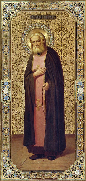 От юности Христа возлюбил еси, блаженне, и Тому единому работати пламенне вожделев, непрестанною молитвою и трудом в пустыни подвизался еси, умиленным же сердцем любовь Христову стяжав, избранник возлюблен Божия Матере явился еси. Сего ради вопием ти: спасай нас молитвами твоими, Серафиме, преподобне отче наш.