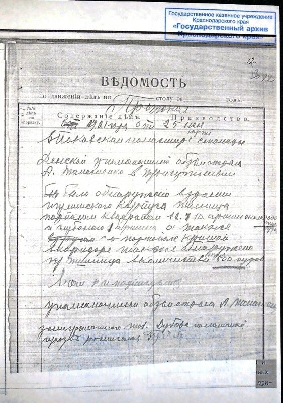 Выражаем глубокую благодарность сотруднику Государственного архива Краснодарского края Александру Владимировичу Бабичу за оказанную нам помощь.