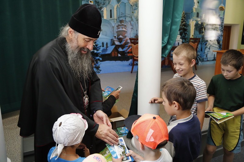За всё время пребывания в монастыре вынужденных переселенцев всем детям-беженцам на праздники святителя Николая и Рождество Христово всегда раздавались подарки. Около года, когда в Лавре было много деток, в обители действовала детская школа творчества «Умелые ручки». По благословению владыки наместника детям беженцев на берегу Донца установили две песочницы, в актовом зале стали показывать мультфильмы, в вестибюле женской гостиницы была устроена выставка детских рисунков. Также для беженцев организовывались экскурсии по Святогорью и скитам. Помимо этого, для решения вопросов с оформлением документов в городе Славянске беженцам предоставлялся монастырский транспорт. Также Лавра организовала медицинское обследование детям перед школой — на монастырских автобусах в Славянск возили и по школам их распределяли. Окрестные школы тогда в две смены работали — и сельские, и городские.