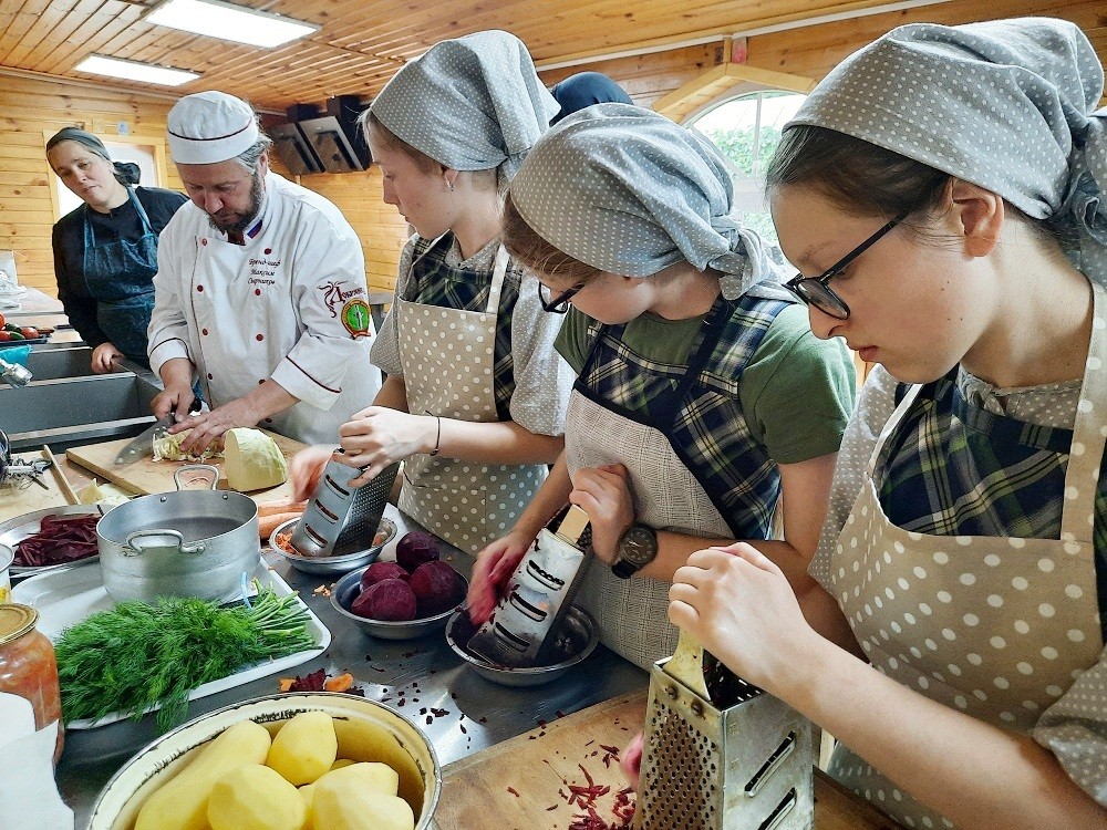 Максим Сырников, российский шеф-повар, телеведущий, блогер, автор популярных гастрономических трудов, провел мастер-класс для воспитанников Богородицкого Житенного женского монастыря, что на озере Селигер в городе Осташкове Тверской области.