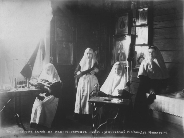 О том, как был организован труд в живописной мастерской, вспоминала монахиня Серафима (Булгакова): «Сестры жили по послушаниям. В корпусах обычно находились мастерские и жилые келии. Кто где работал, там и жил. В монастыре была большая живописная мастерская. В ней сестры не только писали иконы, но и заготовляли доски, золотили и чеканили. У каждой была своя специальность. В последнее время создали отдельную иконописную. Больше 80 сестер жили и работали в литографии. Сами работали на камнях (накалывали), по году подготовляли каждый камень. Печатали на моторе картины. Кроме того, переводили картины на белые грунтованные доски и затем их прописывали. Отливали из алебастра фигуры преподобного с медведем и раскрашивали. Делали всякие корзиночки, игрушки. Все это раздавали и продавали в монастырской лавке».