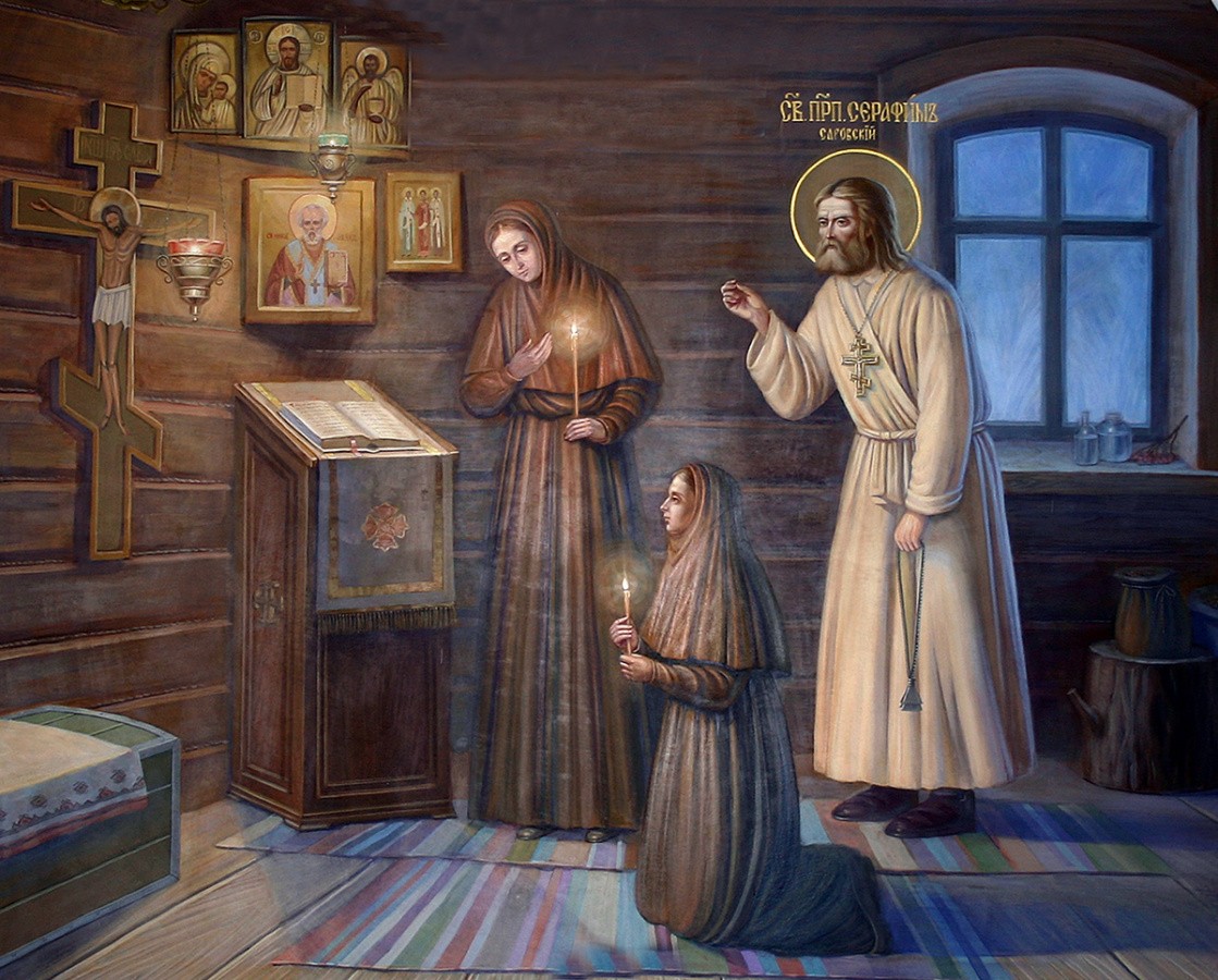 С любовью руководил преподобный своими духовными чадами, строго заповедовал им исполнять послушание как повеление Самой Царицы Небесной и с отеческой заботливостью утешал, когда от скудости жизни и тяжелых трудов временами впадали они в малодушие. Так, старица Домна Фоминична рассказывала, что она и сестра Акулина Васильевна по послушанию возили дрова из саровского леса от дальней пустынки и однажды зимой сильно прозябли. По малодушию они расплакались. Пошли к батюшке в ближнюю пустынку, не зная, тут ли он, и, плача, встали около нее. Батюшка познал духом, что они пришли, принял их, как нежный отец, и так утешил, что они совершенно забыли свою усталость, холод и поспешили ехать домой.