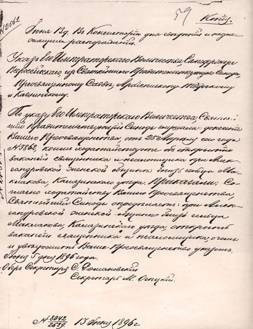 По указу Священного Синода от 4 сентября 1895 года основанная в 1892 году в сельце Маклаково женская община была официально утверждена. Указ на имя Преосвященнейшего Саввы, Архиепископа Тверского и Кашинского гласил: «Ваше Преосвященство ходатайствуете об учреждении в память событий 17 октября 1888 года женской общины в сельце Маклаково, имении крестьянина деревни Медвежьей, Калязинского уезда, Ивана Бачурина, с наименованием сей общины «Александровскою»...