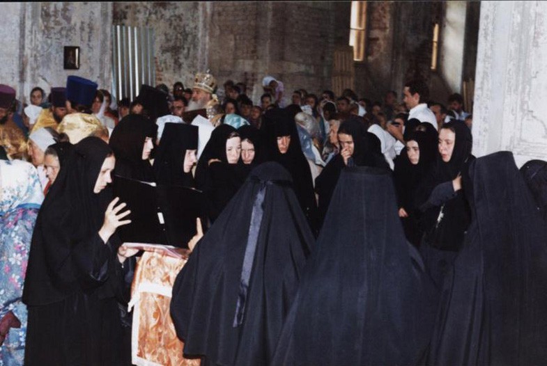 В 1996 году исполнилось 100 лет со времени введения первой в истории монастыря настоятельницы в управление Александровской общиной. Ко дню главного престольного праздника монастыря, дню памяти святого благоверного князя Александра Невского, который совершается 12 сентября нового стиля, в соборе были настелены черновые полы, вставлены окна, был установлен временный иконостас. В этот праздничный день торжественное богослужение в возрожденном соборе совершал Митрополит Крутицкий и Коломенский Ювеналий.