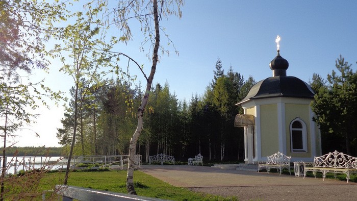 Возрождение монастыря началось в 1994 году установкой поклонного креста на Святом озере.