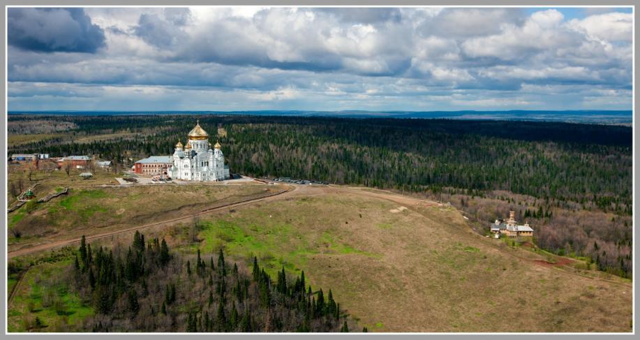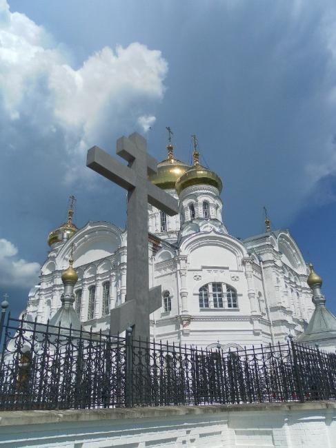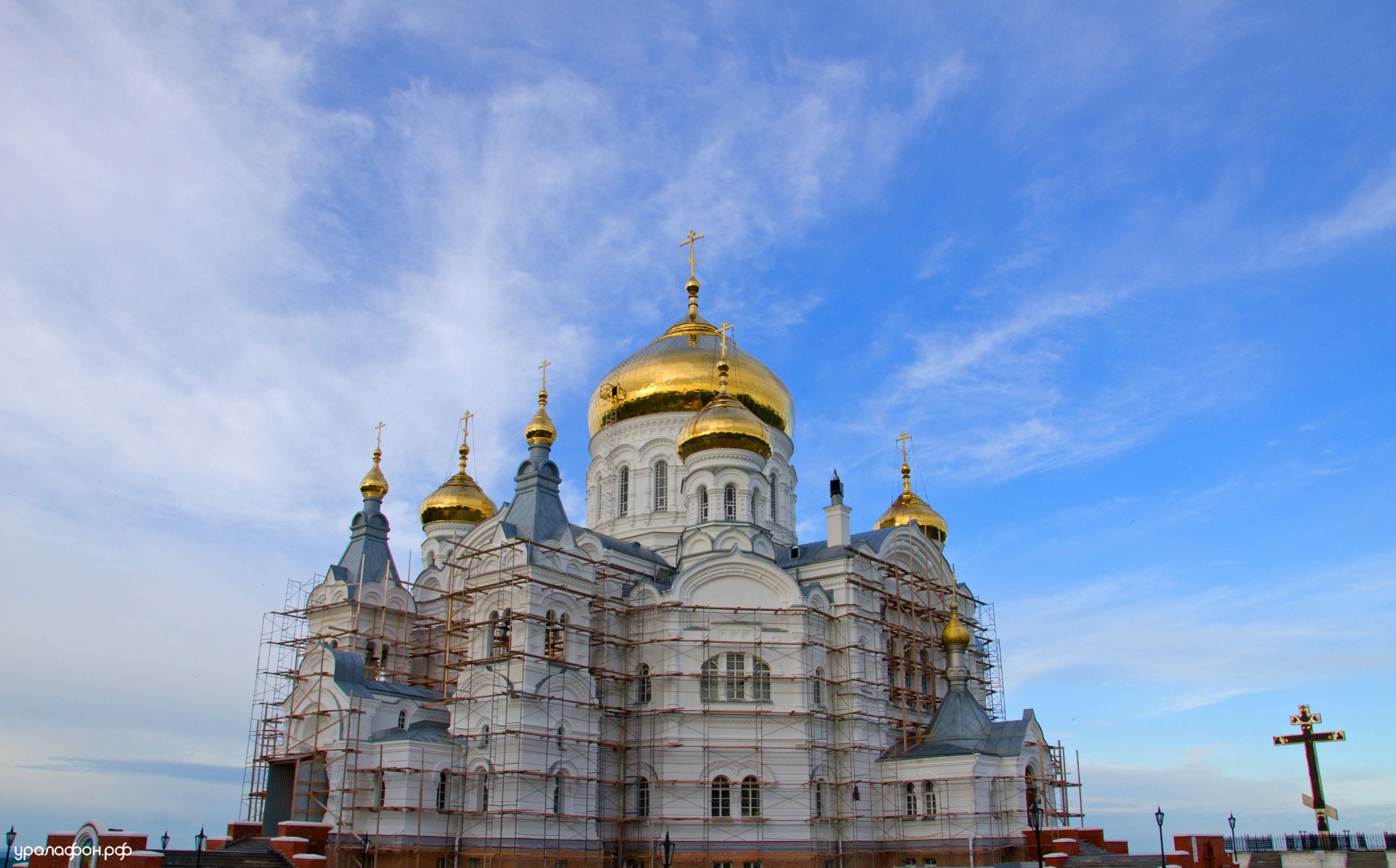 7-9 июня 1917 года был освящен, крупнейший на Урале, соборный Крестовоздвиженский храм, возведенный в память чудесного спасения от грозившей в Японии опасности, тогда благополучно царствующего Императора Николая II. На церемонии освящения присутствовало около 30 тысяч человек, в том числе около 2,5 тысяч представителей духовенства. Сам собор вмещал до 8 тысяч человек. Сооружение храма продолжалось 15 лет, строительством руководил инженер Е.И. Артемов. Главным поставщиком строительных материалов был монастырский кирпичный завод, имевший три печи. Белогорский собор, выстроенный в византийском стиле, напоминает своей архитектурой Владимирский храм в Киеве: он стал самым красивым и грандиозным храмом Пермской епархии. Для его украшения были использованы иконы, изготовленные в иконописной мастерской монастыря. Самые дорогие иконы, помещенные в иконостас, современники оценивали в огромную для того времени сумму — 3.000 рублей каждая. Храм был оборудован «новейшей вентиляцией» и паровым отоплением, пол вымостили метлахской плиткой, на предсоборную площадь положили асфальт. Общая стоимость храма оценивалась в 230 тысяч рублей.