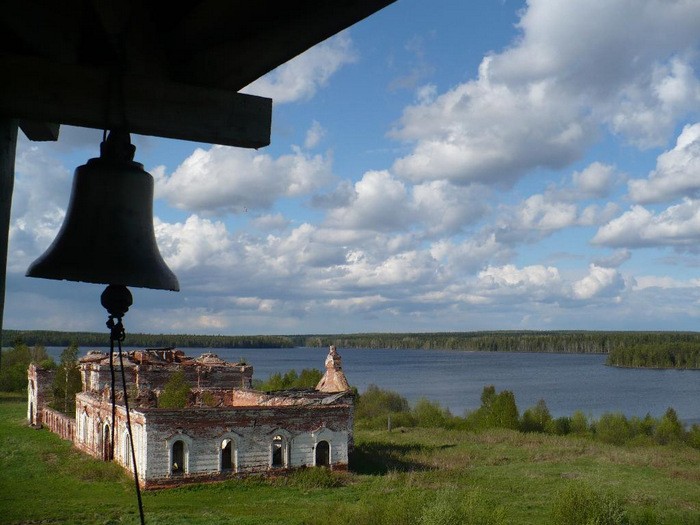 колокольни, сооруженной из кирпича в 1909 г., но в 1930-х гг. частично