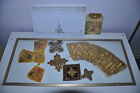 В ризнице монастыря как дорогие реликвии хранились два знамени с вышитыми вензелями императора Александра I на одной стороне и двуглавыми черными орлами на другой — участники Отечественной войны 1812 года и Бородинского сражения. Знамена были принесены в дар самим князем Петром Михайловичем Волконским, фельдмаршалом, бывшим долгие годы министром Высочайшего Двора, личным другом и «неразлучным спутником» императора Александра Павловича.