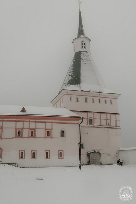 Против северо-западного угла соборного храма, находится теплый монастырский храм во имя Богоявления Господня, построенный по благословению и плану святейшего патриарха Никона в 1657-1658 г.