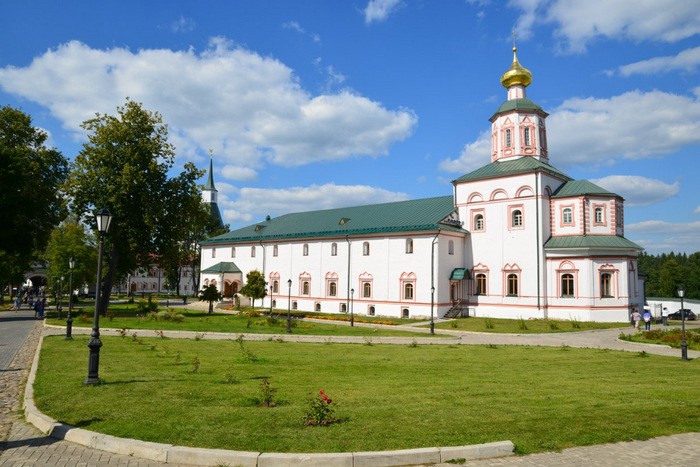 соборная церковь во имя Успения Богородицы «о 5 главах», вокруг которой была просторная галерея с двумя палатками в виде часовен, где размещались монастырская ризница и библиотека (1653-1656 гг.);