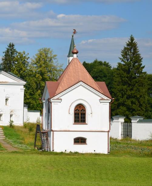 Церковь во имя св.Иакова Боровичского одноэтажная, квадратная в плане, перекрытая коробовым сводом, с полукруглой апсидной частью. Над кровлей возвышается высокий широкий купол с круглым барабаном и шаровидной главкой. Вход в храм со стороны южного фасада, из сада.