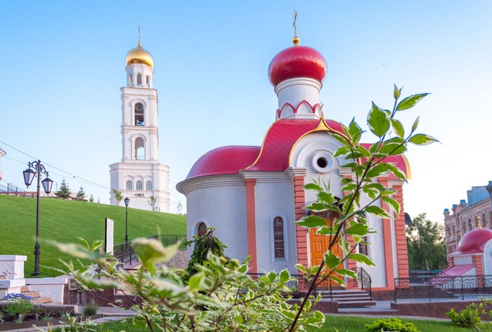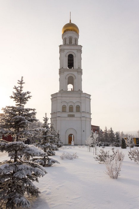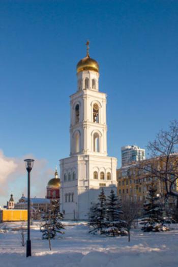 Современная колокольня - точная копия дореволюционной монастырской колокольни, которая долгое время являлась визитной карточкой Самары. Она – красивая и заметная достопримечательность крупного приволжского губернского центра 21 века. 57 – метровая белоснежная колокольня видна издалека из разных точек города и сразу привлекает внимание туристов с теплоходов, плывущих по Волге. Особенно впечатляюще – прекрасен вид ее вечером, когда она в сиянии электрической подсветки возвышается стройной красавицей над городом на фоне темнеющего небосвода.