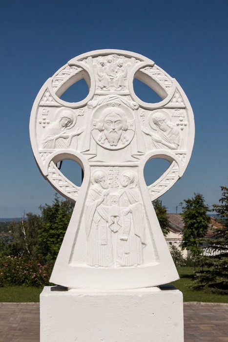 Рядом с колокольней установлен поклонный Крест в честь святых равноапостольных Мефодия и Кирилла, первоучителей Словенских.
