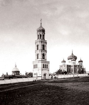 Расспросив меня о материальном состоянии обители, он обратился ко мне со следующим вопросом: «Что было бы лучше для обители: слить большой колокол или выстроить колокольню?».Подумав и сообразив, что для большого колокола требуется и большая колокольня, я ответила, что, разумеется, требуется большая колокольня, так как большой колокол негде и повесить... Старик Жуков на это ничего не ответил и, уходя, никакого обещания не дал... Но к моему изумлению, на другой же день, после поздней обедни, приходит ко мне совершенно незнакомый человек и просит указать место, где бы сложить кирпич для колокольни. «А сколько кирпича?» – спрашиваю я его. «Сто тысяч», – был его ответ». Появились и другие жертвователи. Купчиха из Санкт – Петербурга И.П. Ненюхина пожертвовала более 10,0 тыс. рублей на отливку колокола и позолоту креста.