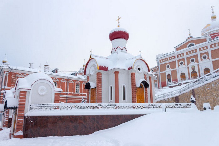 Красно – белое здание монастырской часовни с иконой Царя - Страстотерпца над входом еще одно утверждение незыблемости православной веры, крепости духа российского народа и поклонения памяти мученикам.