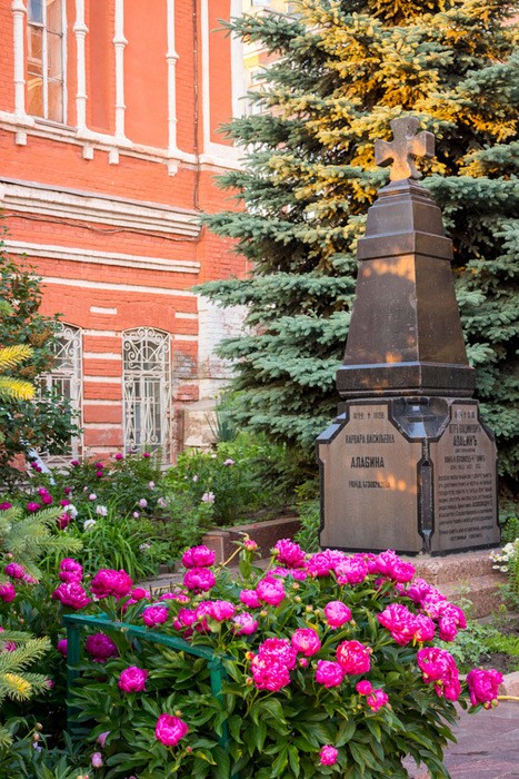 В игуменство матушки Антонины, по Божиему смотрению, одним из постоянных и крупных благотворителей монастыря стало семейство Алабиных. Петр Владимирович Алабин происходил из рязанского дворянства и по семейной традиции стал военным. В 1849 году в составе Камчатского егерского полка он участвовал в походе русских войск в Венгрию, затем в Дунайской кампании 1853 года и в знаменитой обороне Севастополя во время Крымской войны. За участие в этих военных походах Алабин был награжден орденом Святой Анны 3й и 4й степени, орденом Святого Станислава 2-й и 3-й степени. Позже на основе своих военных дневников он опубликовал трехтомник «Четыре войны. Походные записки».