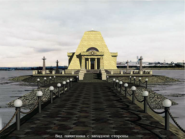 В 1805 г. из Симбирского Покровского монастыря был переведен в Успенский Зилантов архимандрит Амвросий Сретенский. Человек он был очень просвещенный и деятельный. Имел прекрасную библиотеку, после него остались богословские труды, им написанные и напечатанные.После победы над Наполеоном в России поднялась волна патриотизма, стали возводиться памятники в честь русского оружия и героизма. Амвросий решил создать на месте часовни памятник в виде «столпа», причем на свои средства, плюс небольшие пожертвования. Собрано было 5000 рублей.В 1812 г. проект памятника-столпа был представлен императору Александру I. Ему идея пришлась по душе, но он поручил переделать проект известному столичному архитектору Алферову. Однако Алферов создал только проект, надзор за строительством вел губернский архитектор А.К.Шмидт. Именно он сделал облицовку стен из белого камня. В 1813 г. государь утверждает план, а от себя жертвует 5000 рублей. Царская семья добавила столько же. Была объявлена всенародная подписка, давшая еще 100.135 рублей.