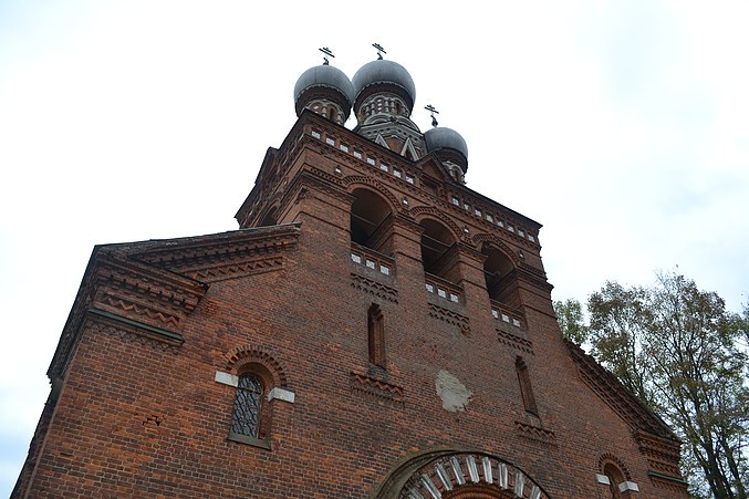 Храм уникален по своим архитектурным особенностям, не имеет аналогов в России. Он построен в 1895 году на средства уроженца этих мест Капитона Ивановича Смирнова. Ему помогали местный священник о. Василий Дьяков и помещик Лаврентий Лаврентьевич Блодо. Много лет эта церковь находилась в запустении, были выбиты окна, голуби залетали в храм стаями. Большая часть храма (особенно алтарь) находилась под толстым слоем птичьего помета. Храм много лет не отапливался, разрушались стены и колонны, портился дубовый иконостас. Кровля и кладка храма разрушена во многих местах, на крышах растут деревья.