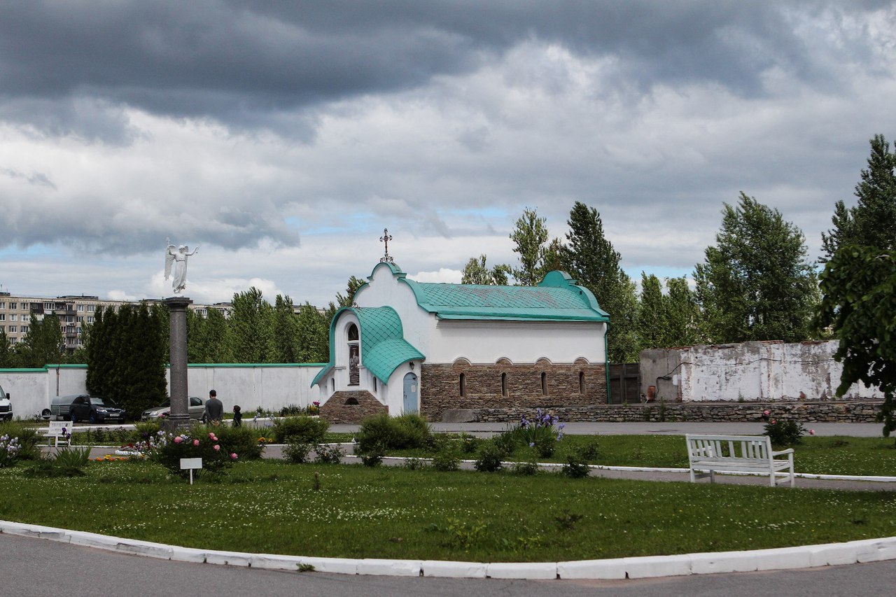 Новое место в районе Веселого Поселка, выбранное под строительство подворья, удобно было тем, что располагалось на краю города, при въезде с Мурманского шоссе, со стороны монастыря. Прежде там находились складские помещения Ленкниги, в большей части давно запущенные и превратившиеся в свалку мусора. Склады стояли отдельно от жилых кварталов, на пустыре. Подворье начали возводить в 1999 г., для чего было выделено здание бывшего книжного склада.