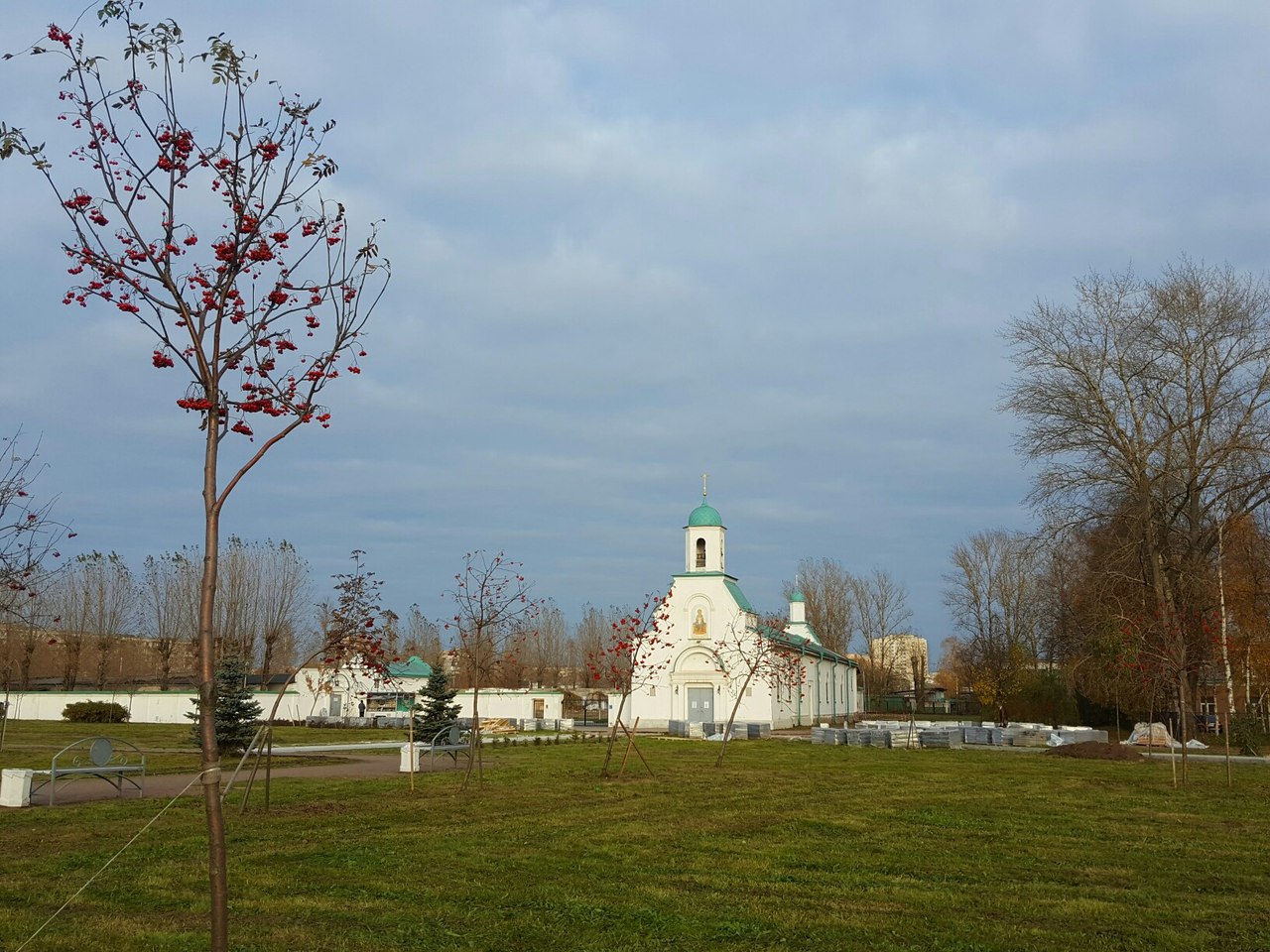 Укрепив и перестроив во многом старое здание, уже весной 2000 г. возвели небольшой купол над алтарной частью храма и колокольню при входе, перекрыли крышу здания. Во внутреннем дворе подворья устроили часовню, трапезную, подсобные помещения.